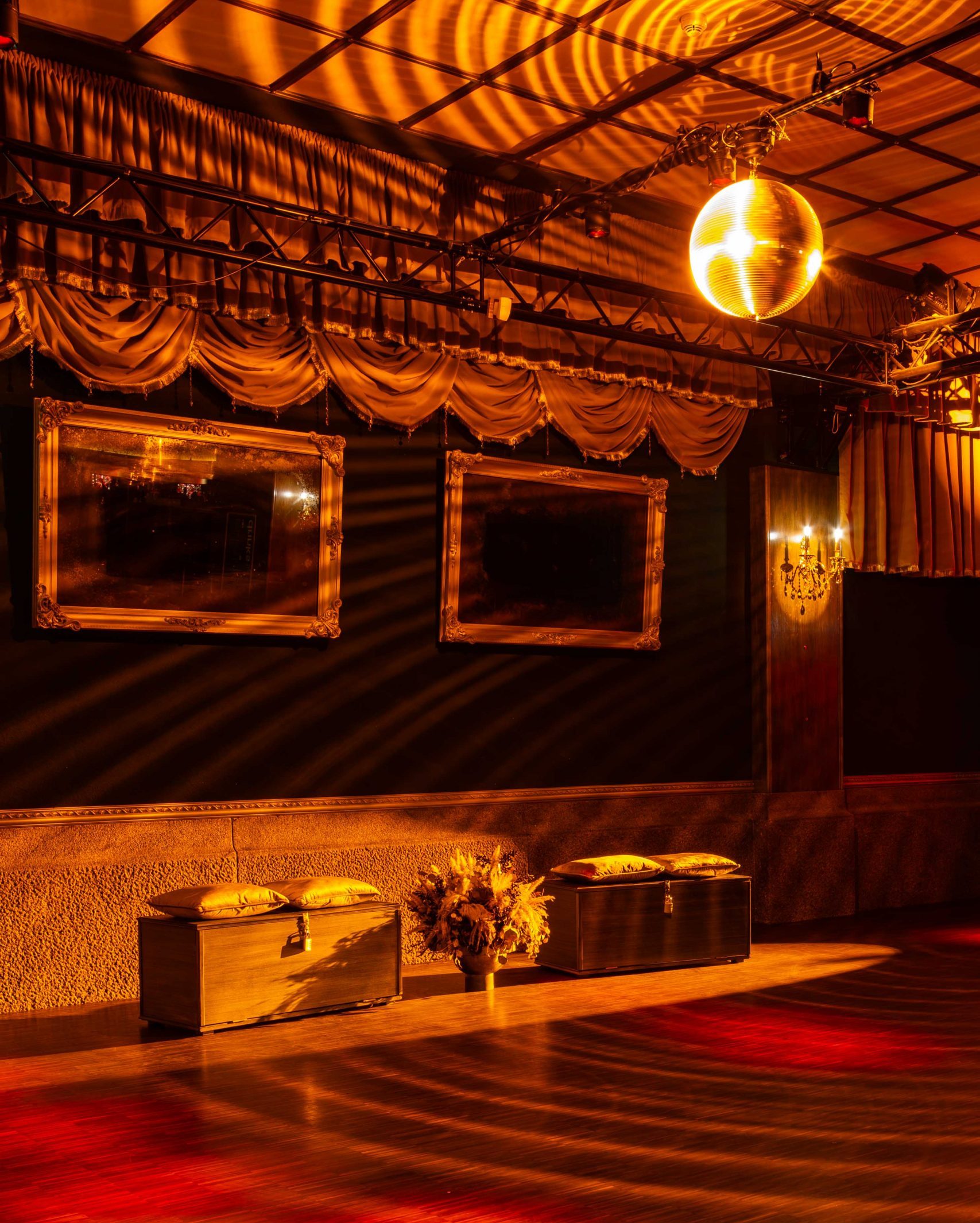 Da der Raum für eine vielseitige Nutzung vorgesehen ist – von Konzerten über Partys und Lesungen bis hin zu Corporate Events – rückte die Raumakustik früh in den Mittelpunkt des Entwurfs. Mein Ansatz war es, gestalterische und akustische Anforderungen miteinander zu verschmelzen. So verbirgt die Kassettendecke hochwirksame Absorberplatten und fungiert gleichzeitig als dekoratives Element. Auch die gezielt angeordneten Vorhänge aus schwerem Bühnensamt schaffen eine warme, historisch anmutende Atmosphäre und nehmen gleichzeitig akustisch Einfluss auf den Raum.